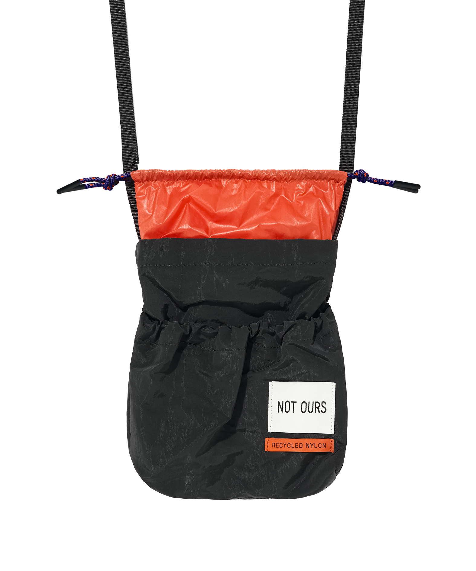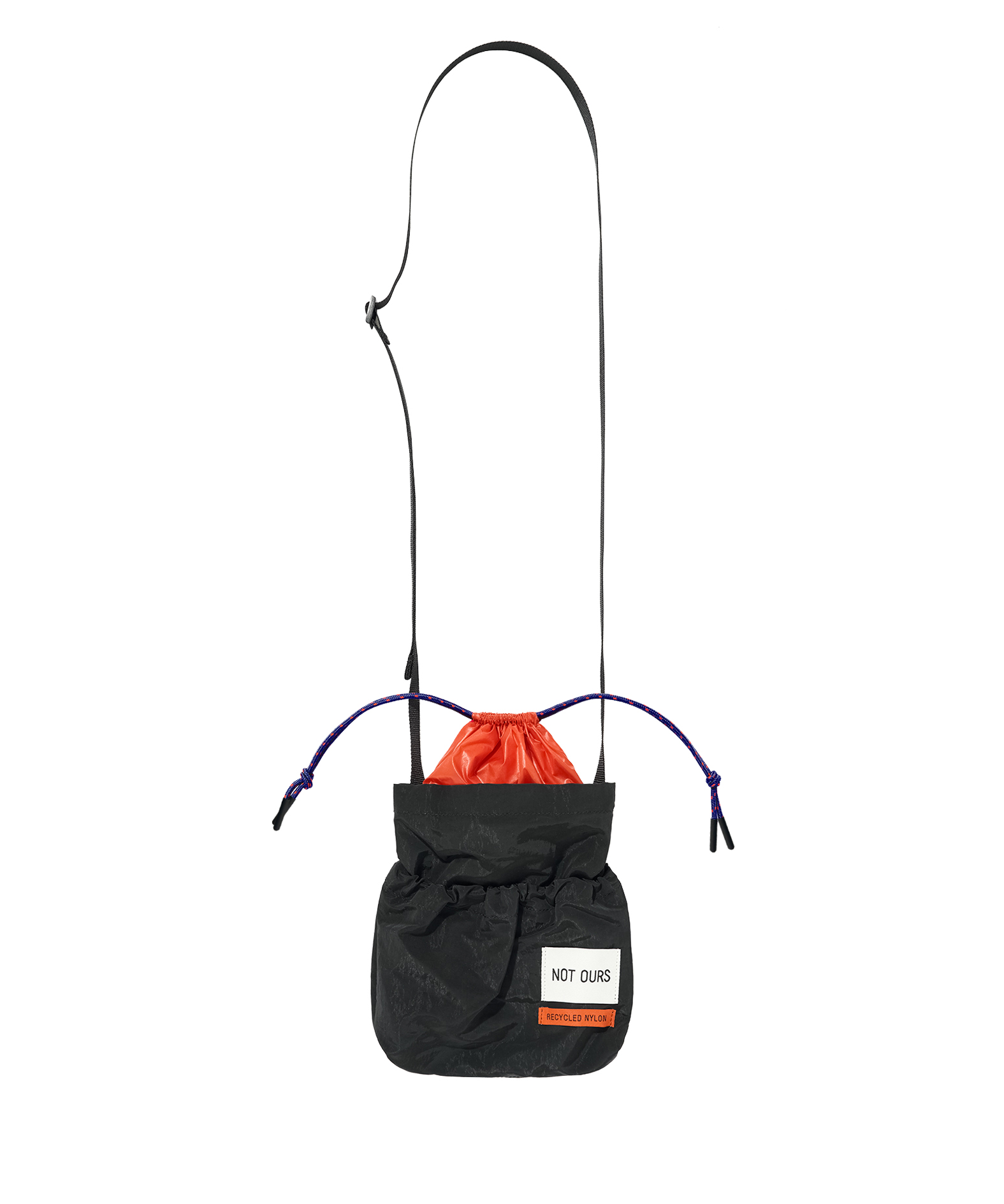 반짝이는 재활용 나일론 겉감과 반투명 나일론 안감의 대비되는 컬러 배색, 복주머니 같은 형태가 귀여운 아이템입니다. 오프닝에 아웃도어 스타일의 스포티한 스트링으로 포인트를 주었으며, 앞뒤로 고무줄이 들어간 보조 포켓이 있어 실용적입니다. 얇은 웨빙 스트랩은 길이 조절이 가능합니다.
